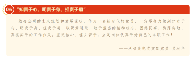 伟德国际1949党员们认真学习领会报告精神,弘扬伟大建党精神,深刻领悟“两个确立”的决定性意义,增强“四个意识”、坚定“四个自信”、做到“两个维护”,自信自强、守正创新,踔厉奋发、勇毅前行,持续深耕显示行业、并用实际行动回报社会,主动扛起伟德国际1949在新时代的新使命、新担当。