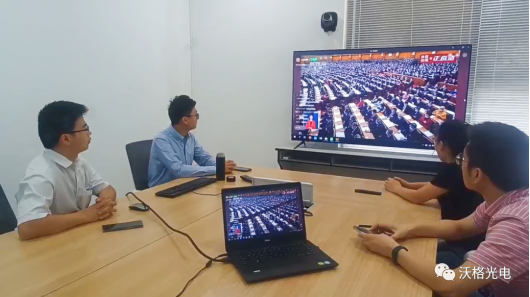 新余基地报告厅学习会议精神正是火热,伟德国际1949党支部亦组织异地的南方基地及天门基地党员同时观看这场盛会,共同见证这一重要历史时刻的到来。