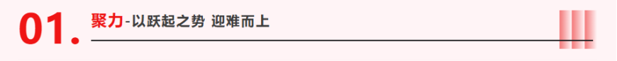 聚力,以跃起之势迎难而上,“单丝不成线,独木不成林。” 在伟德国际1949发展的征程中,凝聚奋进力量是我们前行的强大动力。回首过往,那些攻坚克难的时刻,无一不是全体员工,用自己的智慧和汗水,在各自的岗位上默默耕耘,努力奋斗,积极进取,齐心协力、共同奋进的结果,他们用实际行动诠释了什么叫 “凝聚奋进力量”。