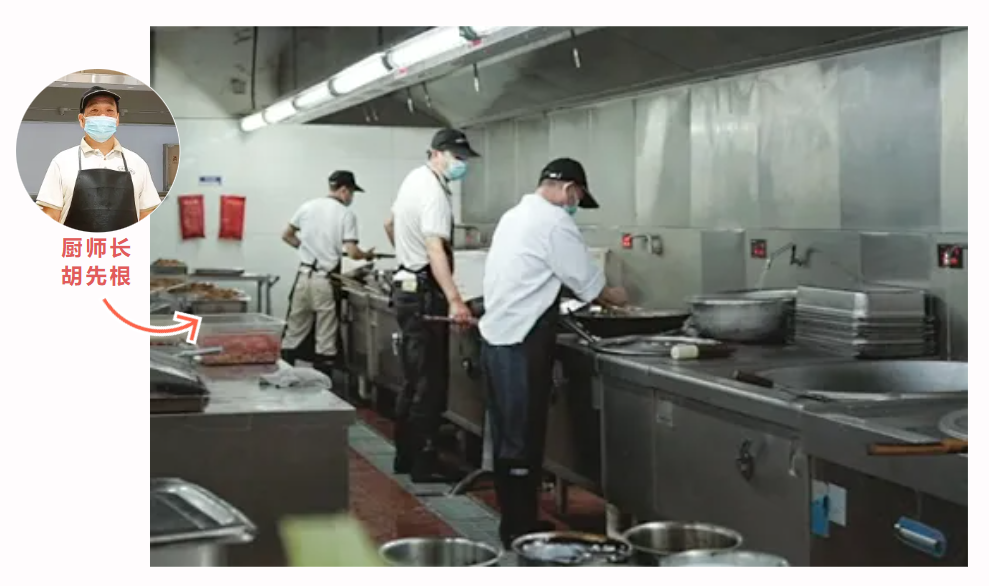 早上7点半,58岁的厨师长老胡就开始熟练地为午餐备菜,10点,老胡的炒勺在铁锅中翻飞,准备制作今天的招牌红烧肉。“做千人饭,最讲究一个‘稳’字。”老胡一边说着,一边将肉块倒入沸腾的油锅,“油温要够,火候要准,调味要匀,差一点都不行。”为了保证千余名员工能按时吃上热乎饭菜,又不过多备菜而导致浪费,他每天都要精确计算食材用量,统筹协调后厨人员分工。