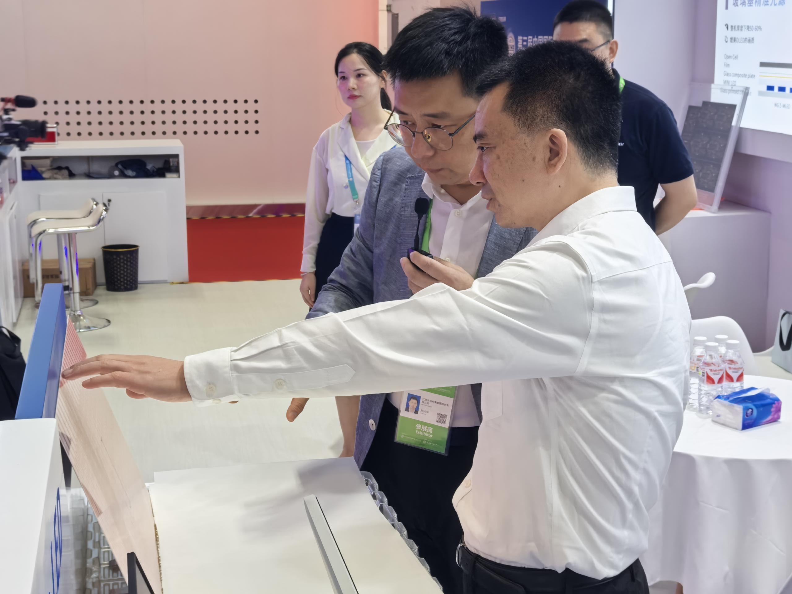 7月16日,第三届中国国际供应链促进博览会(简称“链博会”)在北京开幕。江西省副省长夏文勇在走访调研此次江西组团参展的企业代表时,深入伟德国际1949集团展区调研参观。伟德国际1949集团董事长易伟华接待夏文勇一行,并详细介绍和汇报了伟德国际1949集团围绕玻璃基精密线路板所进行的技术研发、产品制造和市场布局等情况。