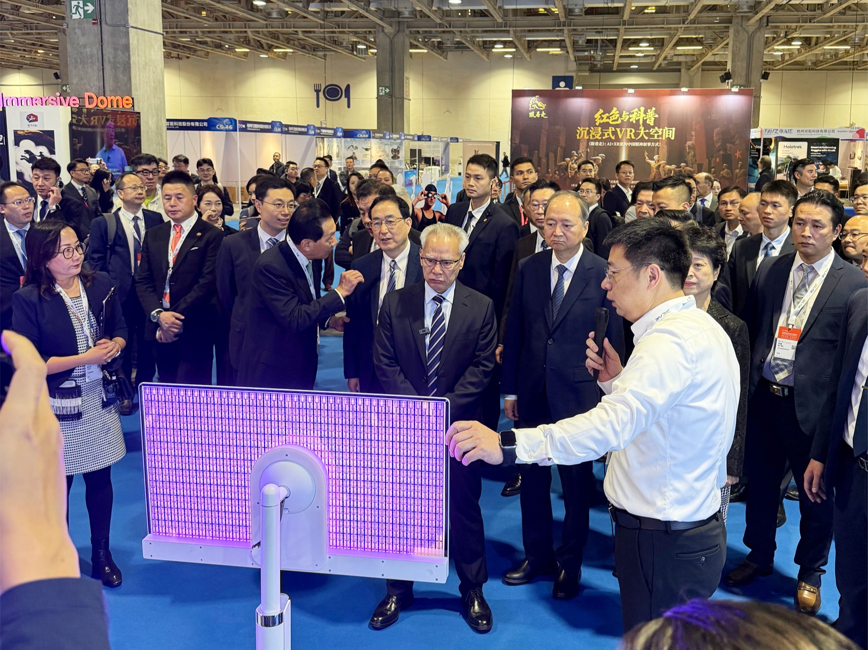展会期间,澳门特别行政区行政长官岑浩辉,中央人民政府驻澳门特别行政区联络办公室主任郑新聪,广东省委常委、统战部部长王曦,中国电子协会会长王宁等嘉宾莅临伟德国际1949展台参观指导。