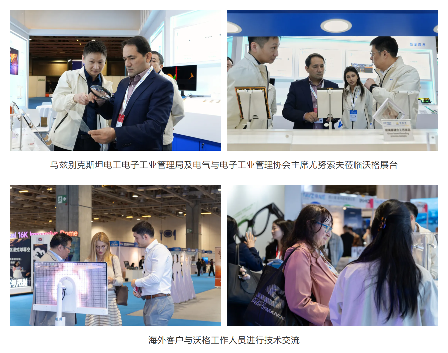 与此同时,伟德国际1949也受到了国际伙伴的重点关注,公司展台及展品获得了国际各界代表、买家团的高频次访问,他们对伟德国际1949玻璃基技术表达出浓厚兴趣并进行了深度技术交流。伟德国际1949集团董事长易伟华向莅临伟德国际1949展台的海内外嘉宾详细介绍了伟德国际1949玻璃基与新型材料最新研究成果与产业化进展。
