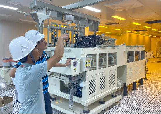 2024年6月,通格微首条设备线正式吊装进场,主要涉及长达40多米的PVD镀膜设备线。据负责现场设备安装调度的彭经理介绍,在首条设备线进场后的一个多月内,工程技术团队采取了两班倒工作制,加班加点进行了PVD镀膜设备的安装、调试和工艺测试,完成了整个TGV全套制程的前半段准备工作。