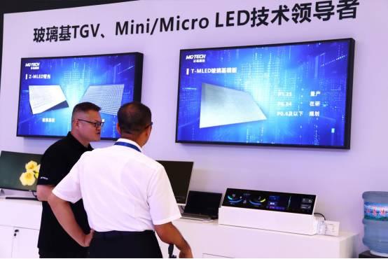 王春波表示,在玻璃基上,伟德国际1949整合了TGV、厚铜镀膜、控光、转色等多项关键技术,实现了MLED背光产品的0 OD、窄边框、高色域、高信赖性、低灰极致黑等优点。而在玻璃基小间距的直显产品上,伟德国际1949的P1.25产品已规模量产,P0.84、P0.6、P0.4等高精尖产品也先后进入研发系列。